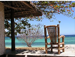 | Das kleine, romantische Resort liegt an der Südspitze von Sangat Island, direkt an einem 600m langen Sandstrand. Die zehn Bungalows sowie eine exklusive Villa sind alle im lokalen Stil und mit lokalen Materialien erbaut worden und landestypisch und geschmackvoll eingerichtet. Im Beachfront Cottage kann sich der Gast vom Meeresrauschen in den Schlaf wiegen lassen, in den Cliffside Cottages wird er vom Gesang verschiedenster Vögel erwachen. Alle Cottages verfügen über Veranda mit Blick aufs Meer und sind mit geräumigen Badezimmern mit Dusche und WC ausgestattet. Die Schlafzimmer verfügen über drei Betten, Ventilator und bieten Platz für zwei bis drei Personen. | |||